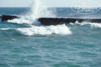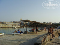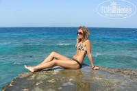 3. Пляж как таковой отсутствует (каменные ступеньки я пляжем не считаю). Есть пирс, откуда в море можно спускаться по металлической лесенке. Не слишком удобно, но если привыкаешь, то плаваешь будто в открытом море. Кораллы, рыбки, все дела... ))