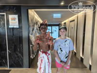 Дружелюбный, приветливый. Не все владеют английским, но компенсируют это использованием переводчиков. Очень понравилось общение с официанткой Aumie: очень энергичная, весёлая, общительная, прекрасно знает английский, несколько фраз на русском, с удовольствием обучила нас нескольким тайским фразам. Мы приехали накануне Хэллоуина. Внизу всё было уже оформлено в соответствующем стиле. Большим сюрпризом было, что большинство персонала в сам праздник тоже преобразится до неузнаваемости, для поднятия настроения постояльцев.