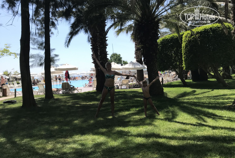 Отель очень зеленый, природа изумительная, пение птиц. Растут плодовые деревья , сосны. Какой аромат стоит, вкуууууусный. Гора могучая позади отеля. Живописно! Территория отеля очень ухоженная, чистая! Отель предпоследний в Текирова, соответственно много транспорта не ездит. Пешком ходили на местный рынок. На экскурсии ездили от туроператора, нареканий нет, все понравилось! Мы остались сильно довольными!
