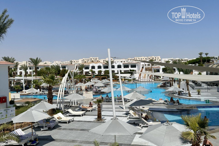 В главном здании просторный ресепшен, столовая, ресторан Casa Sharm, несколько магазинов-бутиков, аптека, фотосалон, экскурсионное агентство, бар Caribi слева от ресепшен, (там бармены делают вкусные напитки-надо попросить) он с выходом на уличный бар с диванчиками, столиками, с диджеем и вечерней анимацией, можно подняться на второй этаж, где красивый вид на город, вечером включают фонтанчик с подсветкой, атмосферно. Между уличным баром Caribi и нашим третьим корпусом детский клуб JazyKidsClub c игровой комнатой с игровыми автоматами. За третьим корпусом большая огороженная детская игровая площадка DremLand, с качелями и спортивными горками. Перед выходом с главного здания основной большой круговой бассейн, чистый, райское место для детей и взрослых, можно целый день плавать по кругу под мостиками и мимо бара, где тут же в воде сиденья и можно посидеть с бокальчиком прохладительного напитка. В разных местах бассейна водяные эффекты - фонтанчики, водопады, струи воды, в общем скучно не будет. Отдельная зона для малышей. Вокруг бассейна различные лежаки с матрасами, столиками, зонтиками, лаундж-диванами, шатрами с мягкими матрасами. Удобный бар у бассейна, в стекле дают напитки только сидеть у бара, если ходить у бассейна и к лежакам то в пластиковых стаканах, бармен по-русски не понимает и в коктейль наливает что ему удобно (много спиртного, а я его не пью), поэтому после двух подходов больше туда не ходила)), здесь после обеда дают мороженое. Возле отдалённых корпусов разные небольшие бассейны, у каждого стоит душ и множество лежаков с матрасами. В глубине отеля Аквапарк CleoWaterPark, немного разочаровал, в плачевном состоянии, горка-река не работала, работают совсем несколько горок, в баре только вода и газировка, поэтому и людей там почти не было. Было немного отдыхающих только у детского бассейна с фигурами животных, бассейна с искусственной волной и у горок Пирамида и Скорпион. При входе в парк спрашивают по-английски и записывают номер комнаты, при выходе вычёркивают. Сходила посмотреть ради любопытства и желания покататься, но увы желание отпало и больше сюда не возвращалась.
