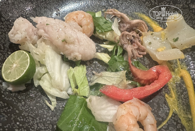 Питание хорошее, за 20 дней не наскучило. В главном буфете вкусно, до этого отдыхала в Риксосе там не было рыбы каждый день как здесь. Салаты, фрукты все свежее. Из ресторанов а ля карт сходила во французский и итальянский, все понравилось. Ресторанные работники очень приветливые вежливые еда приготовлена очень вкусно профессионально и красиво.