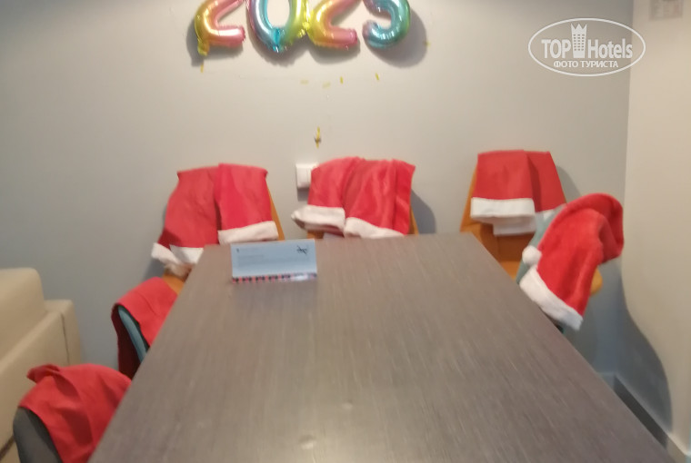 Отдыхали в отеле впервые. Самолет сильно задержали и мы приехали в отель только в 19 часов 31 декабря. Все планы немного нарушились. Но мы не унывали. На ресепшен девчата быстро нас разместили по номерам, вручив на каждого гостя по новогоднему пряничку в виде елочки. Пряники, кстати, на вкус оказались очень вкусными. Нас было 12 человек, 8 взрослых и 4 ребенка. Бронировали 4 номера - 2 четырехместных, студию и двухкомнатный люкс. Номера очень понравились. Все. Номер люкс, конечно, выше всех похвал! Мы очень много отелей посещали, нередко бронируем номера люкс, есть с чем сравнить. Этот номер - супер! Выше всех похвал! Есть все, как дома. Во всех номерах панорамные окна и на подоконнике лежат подушки и лежаки, чтобы отдыхать на окне. Это так удобно... Виды из окон разные, кому как достанется. Но везде интересно смотреть. Номера очень чистые, вся мебель хорошая, не старая, все выдержано в одном современном стиле. Очень приятно. Белье белоснежное. Отдыхали всего двое суток, в том числе Новогоднюю ночь, все осмотреть физически не успевали. Поэтому еще вернемся обязательно. Уж очень нам у вас понравилось. Спасибо огромное!