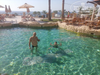 Море супер,есть понтон, отличный риф, кто-то видел мурену, мы видели рыбу титана, но ..обязательно кораллки, песок только на берегу и чуть чуть в воде, дальше кораллы. Которых вообще не стоит касаться, так как своими глазами видели у берега, где люди по колено босиком ходят рыбу камень. Было опасение, что вроде как ядовитая,сказал сыну держаться подальше, потом в номере глянул, самая ядовитая рыба в мире. Плюс крыльчатка плавала и хирурги. В море только плавать и смотреть, не ходить и не трогать.