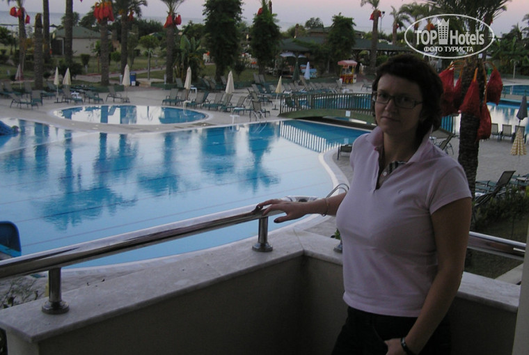 Прилетели в 6 утра, на ресепшене сказали, что номера будут предоставлены только в 14,00, а до этого можете гулять и пользоваться всеми услугами отеля 9 и на том спасибо). После переговоров с администраторами и 20$ в паспорте нас расселили в номер с видом на горки и бассейн. - оцека 4.