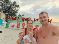 Отдыхали семьей с двумя маленькими детьми с 28.12.24 по 09.01.25, отель очень понравился, брали номера с видом на океан и бассейн, красивый вид с балкона, приятный шум моря, номера просторные, кровать большая в 4ом спокойно спали, хотя была еще полуторка, уборка как и везде в Азии ± пойдет)) территория вся в зелени, от цветочков приятный аромат, от номера до моря 20 секунд, лежаков много, частная территория охрана постоянно смотрела что бы посторонние и торговцы не подходили близко к лежакам, спокойно оставляли без присмотра телефоны, на пляже песок, очень чисто и в море и на берегу! Спасатели и на пляже и возле бассейна, бассейн работает до 21.00, в бассейне есть места и для совсем маленьких и для взрослых всем было комфортно, климат в январе идеальный и не жарко и не холодно, дождь раз только был за 2 недели, завтраки с 06.30 до 10.30 для Азии выбор вполне хороший, фрукты видов 7, часть меняли каждый день, соки, сосиски двух видов, рис, глазунья, яичница, 2 вида сыров , 2 вида колбас, мясо как правило вида 3, есть детские стульчики на завтраке Вьетнамская кухня по лестнице вверх подняться, а то не сразу понятно. На новый год шикарный стол(галоужин) куча морепродуктов, пицца, пиво безлимит, куча мяса всех видов, салаты, десерты и тд во общем 5ка в Турции нервно курит в стороне, первый раз в жизни такое разнообразие видел)) Сразу через дорогу отличный массаж, куда бы не ходили там больше всего нравилось, плюс цены ниже чем у многих(фото прикреплю) так же через дорогу 2 кафешки очень не плохие! Цены очень даже демократичные выбор большой, там же можно поменять баксы курс хороший проверенно) Из советов берите доллары новые с полосочками ,так как во Вьетнаме , старые доллары меняют с меньшим курсом или вообще отказывают принимать, не привычно было после Тая где только купюры 1996 плохо берут и то не везде, там же брали фрукты где меняли и деньги при кафешке этой и магазин и фруктовый и обменник) если пойти в сторону Муйне в 10 минутах пешком будет рынок с фруктами выбор уже намного побольше конечно! Как любителю пива, очень понравилось кафе(фото приложу), если идти в сторону центра по нашей стороне отеля в 5 минутах хоть бы будет Бо Ке(см. фото) вот там и есть как раз крафтовое пиво, но в меню его нету оно висит на столбе (фото приложу) очень даже достойное! При отели есть детская комната, но платная пару раз сходили, пойдет. От отеля начинается набережная не большая в сторону Муйне, при отели есть русская администратор, кто не андестенд сильно по инглишу и вьетнамскому , самый огромный плюс отелю что есть волнорезы кроме нашего отеля весь берег почти не купался, а мы без волн от слова совсем! Плюс где ходили такого пляжа как у нас не было не у кого! Поэтому выбор очевиден! Из отдыхающих в перемешку и много русскоговорящих и европейцев. Купите обязательно раптор, в большим супермаркетах в городе есть, так как есть комары, к вечеру налетали. Вообщем советую, привет из Новосибирска))