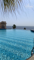 Прекрасная, очень красиво все. Везде цветущие деревья, кусты с цветами, газоны идеально подстрижены. Живности много разной: ящерки, маленькие цапли, удоды, голуби. Все ухожено. У главного инфинити бассейна водопад. Есть качели. В общем все чисто и красиво. Вид на море шикарный, виден остров Тиран.