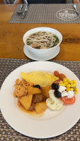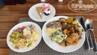 Еды много, и она действительно вкусно приготовлена- Несколько видов мяса всегда: рыба, курица, говядина, свинина в разных вариантах приготовления, на обед и ужин- всегда морепродукты- кальмары и коктейльные креветки в соусе ( всегда одни и те же). Много гарниров, на все приемы еды: супчик Фо, е еще пару видов супов, утром каши- рисовая и овсяная. Отличная выпечки и очень вкусные пирожные и торты . Из фруктов: Арбузы всегда, папайя, драконий глаз, бананы, апельсины, личи, иногда маракуйя, гуава. На завтраки- свежий арбузный сок, молочные коктейли. Других свежевыжатых соков нет. Раз в неделю по субботам- на ужин жарят креветки большие королевские на улице на гриле. На ужин каждый день еще грилят мясо на улице- шашлыки из курицы, говядины, говяжьи котлеты, крокодил, овощи, пирожки вьетнамские и т.д. Мороженое очень вкусное только на обед - в любом количестве, разное в шариках- в креманку или в рожки. В общем еды очень много, всегда найдете, что поесть, к концу отдыха, правда, все приедается. Но по еде прям Зачет отелю! Алкоголь только местный бесплатно, виски, джин- понравились, пиво наливают из бутылок Синху местную- легкое, неплохое.
