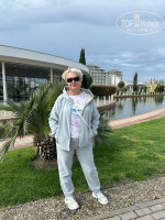 Большая территория, достаточно красивая, ухаживают,пруды и озера,цветы, деревья,питание был завтрак -отличный выбор, достаточно большой,на территории есть кафе и рестораны,до моря летом есть трансфер,даже в апреле людей в отеле очень много,просили номер с видом на горы -вид отличный,отелем довольны!