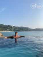 Территория. Отель находится на скале в начале небольшого и уютного пляжа Ката Ной и разделён на две части: Beach Wing и Ocean Wing. Вся активность в отеле происходит в пляжном крыле, в океанском предлагают более приватную обстановку, проживание только для взрослых и я не могу ни чего рассказать про эту часть гостиницы. Лежаки от отеля есть только на территории между бассейнами, на пляже лежак нужно покупать. Стоимость 200 бат/день за два лежака и зонтик. Если уходите – нужно что-то оставлять. Если ничего не лежит – место перепродают другим и на претензии отвечают, что 200 бат это была оплата за два часа и они вам ничего не должны. На берегу стоит палатка. Продают пиво, смузи и фрукты. Мы брали кокосы по 70 бат и фруктовые тарелки по 120. Персонал на пляже это не тайцы, а мигранты из соседней Мьянмы. Тайцы задействуют бирманцев в строительстве, клининге и других не престижных для себя занятиях. Пляж Ката Ной отличный для купания. Вход в воду пологий, море чистое. Утром, вдоль камней под отелем много разной рыбы, можно поплавать с маской. Не ждите интересных рыбок сразу зайдя в воду, они начинаются примерно от ресторана Mom Tri's Kitchen или метров сто от берега. В 150 метрах от берега на поверхности воды натянут канат с буями для ограничения захода лодок и скутеров в купальную зону. От гостиницы к морю идёт отдельная дорожка. Перед входом в отель есть кран для мытья ног от песка. На дорожке дежурит охранник, который не пускает в отель посторонних, а они штурмуют камни перед отелем целый день! Дело в том, что отель расположен на склоне горы. От этого вся территория гостиницы — это фотогеничные террасы и ступеньки на которых получаются замечательные фотографии и на фоне отеля постоянно фотографируются девушки в туниках и боевом макияже. Есть три не больших бассейна. Два, с пресной водой, наверное, больше для детей, третий с проточной морской водой идеален для фото. Чаши маленькие, сидеть в них при наличии шикарного моря в двух шагах не хочется.