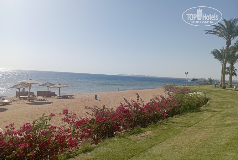 Пляж песчаный, вход в море пологий. Стоят деревянные шезлонги, ветрозащита и зонтики. К концу отдыха на зонтики прикрепили конструкцию с красным флагом. Делали это в 10 часов утра среди отдыхающих. Лежишь на шезлонге, а над тобой дрель работает. Сервис в этом отеле оставляет желать лучшего. Кстати красный флаг совершенно не отпугивает торговцев, Вам всё равно предложат весь спектр услуг. Например, фреши за 5$.