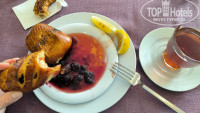 и так, ближе к ресторану) не большой, в сезон, думаю, будет тут жестко с местами. Кухня... на мой вкус, а я если голодная готова сожрать все, и не перебираю особо. Вообще не впечатлила. мой завтрак при отелях это жареные на 2-е стороны яйки, или омлет, овощи, булочки с маслом, сыром и вкусняха. чай, кофе естественно.