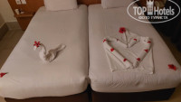 Были в отеле с 26.04 по 04.05.25 вдвоем с взрослой дочерью. Последний раз была в Египте в 2007 году, остались самые негативные впечатления, поэтому в Египет не летала и очень переживала за эту поездку, но хотелось увидеть пирамиды (в 2007 году была в отеле Голден файф- это было ужасно). Скажу сразу, отель мне понравился, не сразу, но понравился. В отеле были в 14.30, сразу дали номер 1413. Он как бы в отдельной башенке в домике (у нас был Лев). 40 ступенек по жаре!!! Зато нет соседей и никто мимо номера не ходит- тихо. Номер стандартный, в ванне только дозаторы с мылом и шампунем, не очень большая душевая кабинка. Номер прибирали каждый день, делали фигуры из полотенец (оставляли чаевые 2 $), каждый день 2 бутылки по 0,6 л воды (при заезде еще 1,5 л). Чемодан в номер поднял работник отеля. При отъезде , без просьб с нашей стороны , пришел работник, забрал чемодан и сам отнес в комнату хранения багажа- было очень приятно (думали как будем тащиться с чемоданом по ступенькам). После заселения сразу пошли на обед. Еды не очень большое разнообразие, но всегда есть по одному виду : говядина, курица, рыба, овощи, фрукты, выпечка. По субботам – рыбный ужин с креветками, крабами, один ужин- суши – приличные и один раз были перепелки- мне очень понравились. Первые дни в отеле было очень много народу, очередь на ужин, но через пару дней уже не было очередей и все было спокойно на ужин (на завтрак и обед никогда не было очередей). Еда хорошая, за все время пребывания не было никаких проблем с пищеварением. Сходили в а-ля карт ресторан- ориентальный- ну для разнообразия, в итальянский не пошли- макароны и на ужин были))). Читала в отзывах, что проблемы с бумажными салфетками, да их нет на столе, они у официантов и можно всегда взять. Алкоголь за обедом и ужином можно взять самим или заказать у официанта, мы ужинали за одним и тем же столиком (так получалось) и официант был одни тот же и он запомнил, что на ужин я пью 1 бокал пива и всегда приносил его сам, даже без просьбы. И такая ситуация с официантами и барменами была во всех барах- запоминали, наливали, приносили- очень клиентооринтированные, было приятно (все это без чаевых). В барах алкоголь стандартный, только почему-то мохито платный?))). Пили пиво, джин, очень вкусный томатный сок. Днем можно перекусить картошкой фри, пиццей и бургерами у большого бассейна. На пляже действительно приходилось занимать лежаки перед завтраком, но и к этому приспособились, все равно ходили к 9 на завтрак. Море прохладное, но потом привыкаешь и тепло, заход пологий, песчаный, есть немного кораллов с рыбками, но для нас наличие кораллов не было обязательным, ну есть и хорошо. Территория зеленая и с цветами, ухоженная. Анимация есть- хочешь учувствуй, не хочешь- никто не будет настаивать. Вечерние шоу очень слабенькие. Персонал –все улыбаются, стараются помочь, делают хорошо свою работу. На пирамиды съездили, заказывали ланч бокс (2 бутерброда, выпечка, сок, банан и яблоко). WiFi – работает у бара Азур, на рецепшене и на пляже. Пирамиды – грандиозные сооружения конечно, хотя бы один раз обязательно нужно увидеть. В итоге – отель очень приятное впечатление оставил, если поедем еще раз в Египет, скорее всего выберем этот отель.