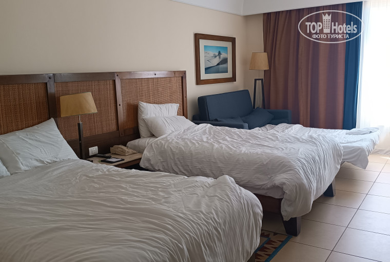 Отель реально 5 звёзд, брали самые дешёвые номера Гарден вью, 7 корпус (номер 7127 и 7125), второй этаж, дали без балкона, но она особо был не нужен, так называемый ого французского балкона (решётка за окном и суток пространства) хватало вывесить купальник и просушить боты для дайвинга. В душе напор воды слабоват, но его хватает. Контингент отдыхающих 90% русские,беларусы и казахи, вечером мультики в амфитеатре на русском. В скай баре танец живота, в лобби каждый вечер живая музыка (скрипка, гитара, саксофон). 08.05 выступали певцы египтянин и девушка из Украины, красиво пели, аниматоры танцевали и создавали компанию на танцполе. Отличная команда аниматоров из России, Беларуси и Украины. Девочки Аня и Настя сделали наш отдых веселее, на пляже пенная вечеринка была огонь, и взрослые и дети веселились. На пляже всегда достаточно лежаков, есть два коротких пирса и понтон. Красивые кораллы, видела мурену, крылатку, клоунов и др рыбок. Заход в море только с понтона/пирсов, у берега есть но очень мелко, детям маленьким может хватит, взрослые тоже в воде потюленить можно. Шикарные рассветы, можно купить фотосессию в красивом платье (100 долларов 20 фото +25 аренда платья). Есть инфинити бассейн 16+, но дети там тоже бывают, никто не прогоняет. Есть дайв центр, цены дороже чем в Хургаде, с ними не погружалась, но ребята отзывчивые и общительные, подсказали многое. Есть водные развлечения катание на банане, таблетке, парашюте, люди рады, но рыб распугали на рифе, маловато и скатов нет. Летали из Москвы оператор fun sun, отличный гид Мухамед, брали у него Каир на самолёте (хотели взять дешевле через империю туризма но мест не было), и яхту Санторини прогулку, всё понравилось.