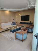 Номер нам дали делюкс в главном корпусе выше нашей категории, приятный апгрейд от отеля, спасибо вам большое. В номере халаты, тапочки, фен не стационарный, утюг, гладильная доска, капсульная кофемашина, чайник, мыльные принадлежности (зуб щетка+паста, станок, расческа, шампунь, кондиционер гель, лосьон фирмы Лонисета). Пополнение мини-бара ежедневно (содовая, вода, пиво Эфес, соки, пепси, фанта, спрайт), также чай, капсулы для кофе , кофе в пакетиках, сливки, вода в бутылках). Освещение в номере интересное, везде есть подсветка, что очень удобно не надо включать центральное освещение. По уборке номера претензий нет, т.к. чистый пол, чистые полотенца, пополнение каждый день всей косметики и мини-бара.