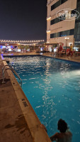 Бассейн очень тёплый и работает с раннего утра и до 10 вечера. На пляж выдают полотенца в сумке и пляжный зонтик, что очень удобно!