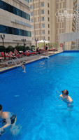 4. На бассейне в 7.30 утра все лежаки уже как правило заняты, люди начинают располагаться в барной зоне, зонтов у бассейна на всех не хватает. Похожая история с зонтиками для пляжа - их начинают разбирать с 7 утра и к 9 утра их уже нет. На бесплатный трансфер на пляж нужно приходить сильно заранее - желательно минут за 20-25, иначе есть риск не попасть. На трансфер на пляж толпы и бойня! При этом если вы ездили на пляж утром, вечером в автобус на пляж вас могут не посадить! Сам пляж JBR тоже не очень понравился - очень много людей, душ платный, в раздевалках толпы. С этого пляжа можно вернуться в отель общественным транспортом (на трамвае и метро), также за полчаса.