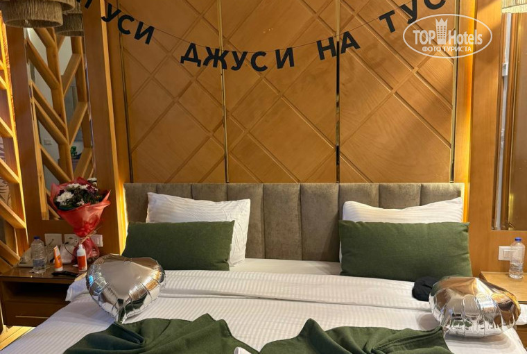 Мы с друзьями были в этом отеле с 25.04 по 04.05 в 2025 году. Нам повезло с номером, на троих дали двухкомнатный, новый номер после ремонта. Вид был на бассейн. Кондиционеры, холодильник и розетки - все работало отлично. Что касается уборки в номере - нам не повезло. Мы жили втроем. но нам всегда клали 2 комплекта полотенец ( с чаевыми и без). Лебедей накрутили один раз в последний день. Отдельная благодарность сотрудникам ресепшен за помощь в организации дня рождения для подруги, организовали букет цветов и торт к нужному времени. По еде у нас не возникло проблем, что поесть. Всегда была рыба, мясо (баранина/говядина), курица, овощи. Порадовал паста-бар, суши-бар на каждом ужине. Попадали два раза на креветки, в тарелку давали по две-три штуки, но мы просили положить побольше, нам никто не отказал. Остались довольны выбором, особенно рекомендуем попробовать фету с добавками ( баклажаны, морковь) - очень вкусно. Десерты особо не пробовали, но выбор шикарный. Фрукты были - дыня, яблоки, финики, виноград, физалис. Также очень вкусный гриль-бар на обед, где кебаб, вкусная пицца на пляже. Что касается алкоголя - мы не особо пили местный алкоголь, он не очень, но как и везде. Везли с собой из России, докупали в дьюти фри.