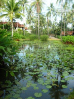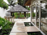 В-третьих, приватные виллы, у которых своя территория и рецепция, - в относительном порядке, а вот "демократическая " часть: двухэтажные корпуса (стандарты, студио и что-то там, якобы, романтическое) и маленькие коттеджи с приватными бассейнами явно нуждаются в обновлении. После н-ного количества сезонов дождей, веранды, заборчики, балконы и всё, что там ещё есть деревянного, стало совершенно серого цвета, как у некрашеных деревенских заборов в российской глубинке. Здорово портит общее впечатление, если честно.