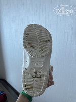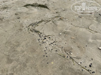 Большой минус пляжа был - это шарики черные на берегу, которые оставляли пятна: на коже, одежде, обуви. Что это - хз - нефть/мазут, но как увидели, стали ходить только в шлепках до берега, теперь шлепки с пятнами на подошве (см.фото). В воде их не видели.