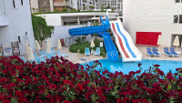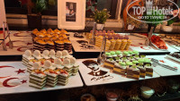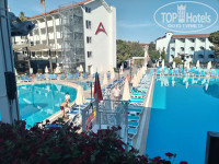 Добрый день всем! Вернулись с отдыха 3 дня назад. Отель для своих 5 звезд, твердая 4+. Заселили в 12 дня, кто не хочет ждать 30€. Номера чистые, уборка хорошая, принадлежностей достаточно. Питание хорошее, на обед не ходили, обедали в лобби баре-картошка запеченая, рыба, куры криль, котлетки, овощи. Завтрак обычный для Турции, ужин - много всего, мясо было, рыба. Алкоголь - шампанское, вино, виски, ракы, текила. Мороженое ,вафли с 13 до 16 в любом количестве. Вода и айран, бери сколько хочешь в номер. Попали на день молодёжи 19 мая, красиво все украсили, персонал танцевал в ресторане! Очень красиво! Анимация крутая!!! Максим, Альбина, Алекс вы супер!!! Сколько ра была в Турции, никогда не участвовала, а здесь поднимают всех на йогу, водное поло, различные соревнования! Вечерняя анимация. Вообщем, ребята молодцы, стараются. До моря метров 300-400,заход не очень, но мы ходили левее к пирсу, заход хороший, песок. Лежаки конечно надо занимать пораньше, что у бассейна, что на море. Отдыхающие в основном русские, были немцы, поляки, все спокойно. Некоторые туристы отдыхают в отеле от 2х раз до 16!!! Цена - качество за 11 дней все устроило. Вернуться в данный отель ещё можно, но все же хочется побывать где то ещё. Всем кто собирается в данный отель, не пожалеете точно!