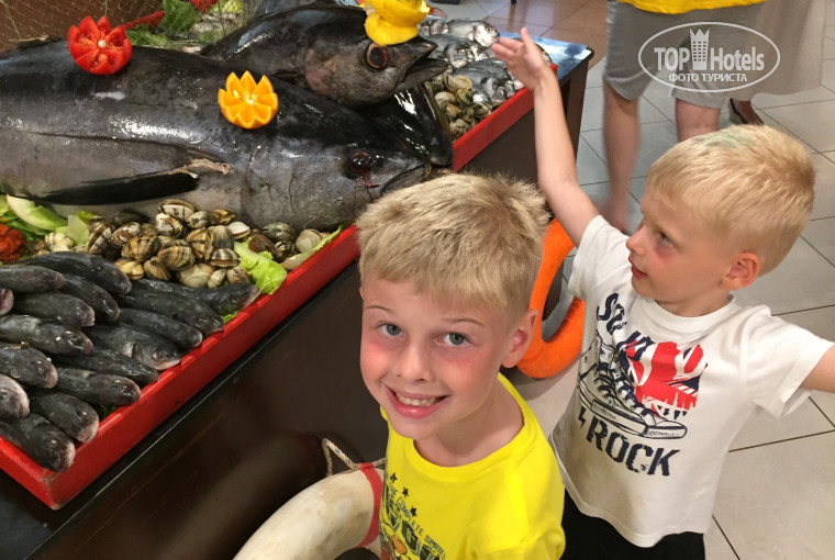 Здесь есть отличный сервис. Всегда помогут с номером - если что то не нравится то поменяют без проблем. Еда отличная. Креветки гриль, курица (филе бедра) гриль, баранина томленая, куча салатов и просто зелени, рыба красная грили и скумбрия. В общем идеально если с детьми.