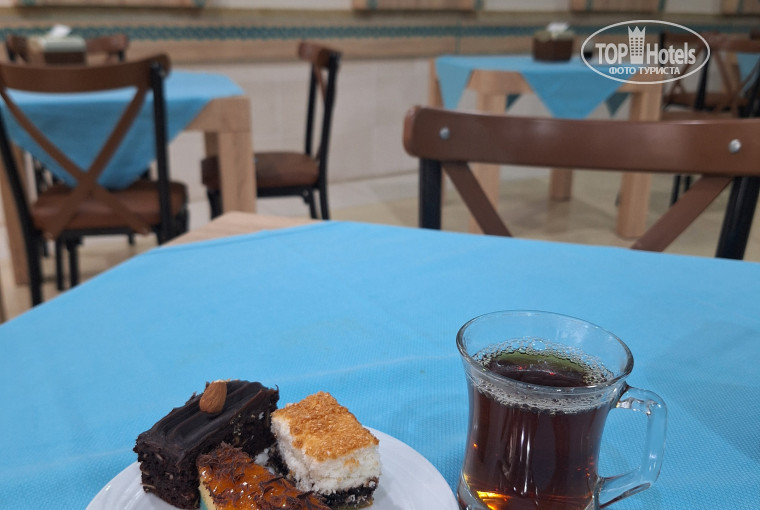 Была с ребенком-подростком 14 лет с 26 мая по 2 июня 2025 года. Никогда не писала отзывы, но в этот раз решила все пофоткать и написать, чтобы люди не боялись ехать, т.к. я считаю, что рейтинг отеля занижен. В этом году они обновили мебель в главном ресторане и во всех общественных зонах - на ресепшен и пр. Добавили горки и бассейны с гидромассажем и волной в аквапарке. Да, в номерном фонде ремонт ещё не делали, но не так уж все и ужасно. Кровати, матрацы, подушки хорошие. Кресла в номерах заменили, фен у нас тоже новый. Сантехника в отличном состоянии, все работает, кондер, телек работают. Убирают каждый день, но так себе. Полотенца поменяли, тапки убрали, кровать застелили, полы протерли, норм. Тапки в номерах есть. Чайников нет, убрали, раньше были. Пляж супер, вода кристалльно чистая. Еда мне здесь всегда нравилась. Мы 5-й раз здесь. Яйца в разных видах, блины, сыры всякие разные, колбасы, сосиски, тосты сам делай, выпечки очень много, картошка во всех видах. Мясо: куриное филе на гриле, колбаски из баранины типа люля-кебаб на гриле, утка, индейка, курица-гриль, рыба, овощи свежие, тушёные, запечённые, пирожных миллион, 2 вида супа каждый день, но они не европейские, а турецкие, не острые, вкусные. Гарниров всяких-разных. Чай, кофе, вода круглосуточно. Алкоголь я не пью, но вижу люди пьют пиво, коктейли, вино. Фрукты: яблоки, груши, бананы, абрикосы, дыни, арбузы. Когда у тебя ребенок-подросток, то аквапарк решает все. Этот отель мне нравится, здесь все по-домашнему как-то. Вечером живая музыка, караоке-вечера, днём всякие игры: волейбол, дартс и т.д. и т.п. Есть спортзал, бассейн на территории. Цена=качество. Аквапарк и питание супер, пляж тоже, лично мне больше ничего не надо. Вай-фай, кстати, улучшили, ловит везде теперь. Когда одни люди пишут плохие отзывы, а другие их читают, то складывается мнение, что все ужасно, у тех, кто не был. Так вот кол-во негативных отзывов не соответствует кол-ву отдыхающих в отеле. Их в разы больше, и они не пишут отзывы))) Я, например, 5 раз была, но пишу в первый раз. На счёт антисанитарии: посуда всегда чистая, после жарового шкафа, прецедентов у нас ни разу не было, а это показатель для меня, т.к. я всегда с ребёнком. Если где-то с утра не успели подмести дорожки на территории, значит, уберут попозже, все мы люди, дома вы с утра до вечера не подметаете и каждую пылинку не сдуваете. Ну и плюс, надо учитывать стоимость. Да, мороженое, здесь платное. Раньше было и бесплатное, давали на обед, но пару лет уже точно нет. А отдыхающих здесь в высокий сезон оооочень много, и это показатель.