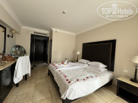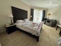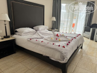 Заселение: приехали в отель в 9 часов утра, на ресепшене нас встретили приветственными напитками - свежевыжатый гранатовый сок, отдали документы и пошли на завтрак. После завтрака подождали ещё минут 30 и нас уже заселили. Номер предоставили согласно купленного варианта - стандарт бэк вью (с видом на соседний отель Solara). Мы попросили нас переселить в другой номер с видом на море за доплату, но сотрудник нам сказал, что может переселить за 20$ за сутки с видом на море или за 30$ за сутки в бунгало с бассейном. Якобы у них компьютерная система бронирования и просто за бакшиш переселить не могут. Мы не стали больше поднимать этот вопрос и остались в своём купленном номере - всё работало исправно, мебель староватая, но нам не критично, матрасы новые. На двух верхних этажах отеля идёт тотальная реновация, там все будет свежее после ремонта.