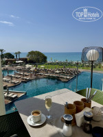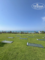 Особенно понравилась его территория! Большая, ухоженная, повсюду великолепный зеленый газон и даже на пляже! Лежаков на пляже и у бассейнов (которые находятся в разных локациях, что несомненный плюс) достаточно, всегда можно найти место. Парковая часть отеля, где мы жили меня восхищала своей красотой каждый день при прогулках с коляской.