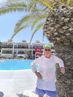 В этот отель приезжаем второй раз и могу сказать с уверенностью , что уровень обслуживания также на высоте , особенно , по питанию. С благодарностью хочу подчеркнуть доброжелательность всего персонала. Как и прошлый раз нас сопровождал до номера в главном здании добродушный , веселый MUHARREM CAVDAR. Не знаю почему ,но нас заселили в главном корпусе, может комплимент , что приехали снова ? Не знаю точно, но мы остались довольны , номера здесь больше , чем в бунгало. На кровати лежала шоколадка с благодарной запиской , что снова выбрали отель. Приятно !