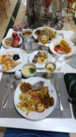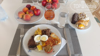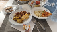 На завтрак были салаты, сосиски (съедобные) жареные с капустой, картошка, каша рисовая, сыр три вида, колбаса (съедобная), овощи, что-то типа супа или подливы, маслины хлопья с молоком, масло сливочное, спред, разные булочки, йогурт, творог, джем несколько видов, халва, сухофрукты, финики, яйца в разных видах, чай, кофе, вода, соки типа юпи (очень сладкие), натуральный лимонад, апельсины, грейпфруты. Жарили омлет, пекли блины.