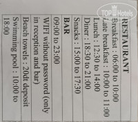 В отеле есть главный ресторан: завтрак с 6 до 10, поздний завтрак 10 до 11, обед с 12-30 до 14-00 и ужин с 18-30 до 21 часа. Снеки с 15 до 17-30, где – не знаю, мы их не искали.
