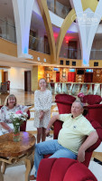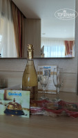 На ресепшен нас приветливо встретила представитель отдела по работе с гостями Валерия, и так приятно было услышать: «Мы Вас помним, очень рады, что повторно вернулись в наш отель!» В считанные минуты нас оформили (в этом году для повторных гостей браслеты были сиреневого цвета), предложили пообедать, так как мы приехали в 12.20. Вернувшись с обеда, получили ключи от номера и были очень рады, что отель вновь, как и в прошлом году, предложил нам двухкомнатный семейный номер, причем тот же самый! Отдыхали тем же составом: мы с супругом, младшая дочь 16 лет и внучка 10 лет. После заселения нам принесли приветственную открытку и комплимент в виде шампанского и сладостей.