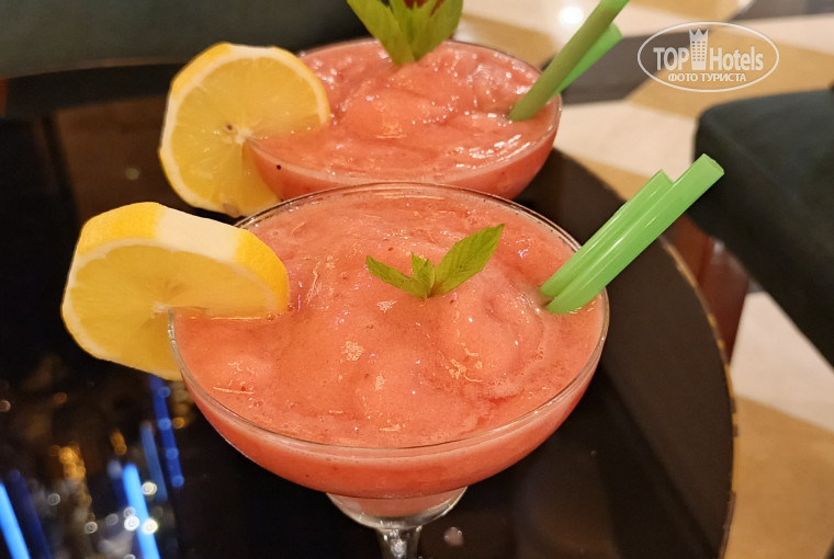 В барах присутствует местный и импортный алкоголь, но я предпочитаю в основном безалкогольные напитки, в этот раз запомнился коктейль- клубничный дайкири (рекомендую), очень вкусно его делал бармен в Атриум-баре. В Лобби, рядом с кондитерской, появилась новая полноценная кофейня с большим разнообразием предлагаемого кофе. Мы обычно около 16.30, после моря, лакомились десертом и вкуснейшем кофе: любимое латте и в этом году для себя открыли айс мокко.