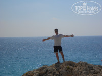 Пляж и море. Вот тут внимательно, на Кипре все пляжи муниципальные, нету частных, поэтому нам сразу сказал гид, сумочки айфоны и украшения держим при себе очень внимательно, так как на Кипр приезжают воришки из Восточной Европы и на мотоциклах-скутерах срывают всё это на ходу, так же промышляют этим и на пляже. Примечательно это мне уже потом сказал один русский турист, что есть одна тюрьма на Кипре, там на тот момент сидело 50 человек и 1 только местный, а 49 вот такие попавшиеся воришки из других стран). Море конечно чистое, прям офигенное, понравилось, только лежаки платные и поэтому мы лежали на полотенцах привезенных с отеля, так же красивые фотки получились возле каменистой части пляжа, на фотках есть. Так же неподалёку есть островок до которого можно добраться пешком, вот там как в рекламе баунти белоснежный песок и сине-голубое море, красота.