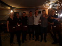 Питание. Завтраки точно были, ужин вроде тоже, но без обеда. Помню что порции огромные были, самое что понравилось это щупальца жаренного огромного осьминог кольцами порезанного, очень вкусно. А так подача как в столовой, сам себе накладываешь стоишь в очереди, но стоишь только в одном месте в очереди, оттуда всё себе и ложишь, нет такого что по всему ресторану бегаешь в поисках разной еды, всё простенько чистенько аккуратненько, набрал сел поел спокойно и пошёл на пляж. Народу относительно немного было всегда. Алкоголя не было, это мы уже сами на улице покупали. Каждый вечер ходили по кафешкам разным, ели и пили, так же были в ночных клубах и катались на автобусах. В итоге выбрали одну пиццерию, которые держали венгры, вот там каждый день сидели, причём я перезнакомился со всеми местными работниками и хозяином, очень приятно что группа играющая там каждый день, посвятила мне песню, как самому доброжелательному завсегдатаю, было очень приятно, на фотка тоже есть общее фото с ними. Что понравилось у них пиво бутылочное формата - пинта, т.е. 0.568 литра, огромные бутылки).