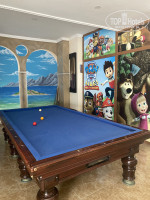 5. Анимация-каждый вечер деревенский турок включает готовый плейлист и время от времени издает звуки, подтверждающие его присутствие. Иногда приглашают девушек из Средней Азии, которые имитируют танец живота, а после скачут между столами, чтобы выпросить деньги у гостей отеля. Из спортивных мероприятий-несколько раз в неделю утром приходит девушка, которая проводит гимнастику и аквааэробику. За зоной ресепшен стоит старый бильярдный стол.