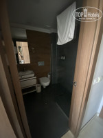 3. Номера-ужасные, тесные, грязные. Совмещенный санузел размером 2 на 2 метра, чтобы помыться нужно протиснуться между унитазом и защитным стеклом зоны душа. Ночи в отеле проходят без сна из-за шума и жары. Кондиционер не включить, так как он установлен прямо над изголовьем кровати, включишь-сразу продует. Балконную дверь тоже не открыть, потому что прямо напротив Lancora находится отель Asdem Park с ночными вечеринками на крыше и проезжая дорога. Нам приходилось оставлять открытой дверь в номер, чтобы был хоть какой-то приток воздуха. И еще-сразу под балконом помойка, куда с утра подъезжает грохочущая машина для вывоза мусора.