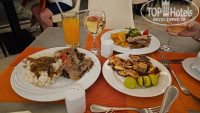 По питанию голодными не останетесь, по мясу есть все, разное каждый день, в разных ресторанах, рыба тушенная, красная рыба на гриле кусочки, креветка, утка, говядина гриль, говядина тушенная в подливе, баранина, курица, индейка, перепел, люляшки из говядины. В целом без проблем, гарниры рис, макарошки, туш.овощи и гриль, картошка фри, варенная и даже иногда пюрешка :-) Но надо учесть, что данное изобилие меняется каждый день по ресторанам.