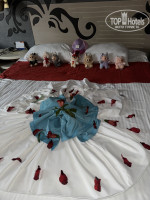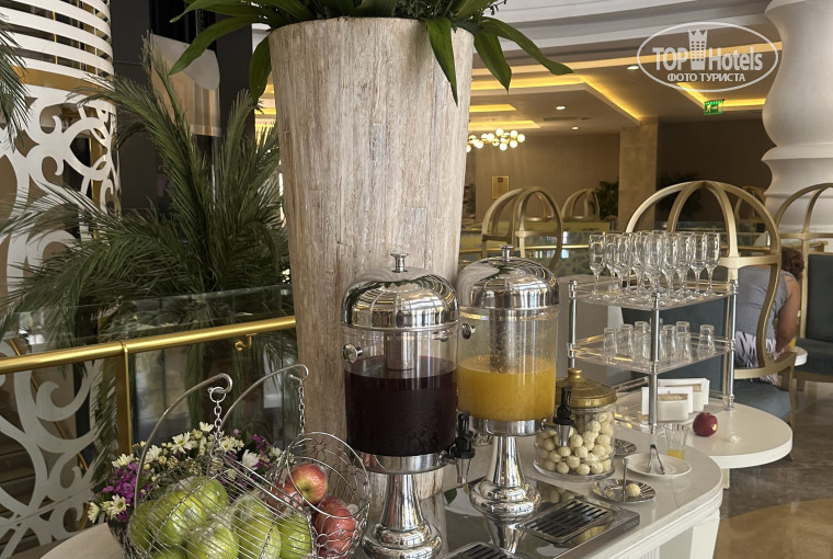 Сегодня последний день и прям честно не хочется уезжать, такой душевный и комфортный и очень гостеприимный отель и это правда! Начну с заления, встретили чуть ли не с порога, напоили помадили отпахнуть, предложили на выбор номера! Это очень подкупило! Территория очень ужоженная красивая но немного не хватило зелени! Детская анимация очень внимательные, особенно отдельно спасибо директору детского клуба очень внимательно отнеслись к нашему ребенку! Так же аквапарки для детей и взрослый превзошли все наши ожидания! Очень понравился бар на втором этаже, но жаль что нельзя с детьми туда! Так же здесь хочу отметить их кондитерскую на втором этаже, вкусные десерты и кофе там подают! Кухня превзошла наши ожидания, вкусная разнообразная и все свежее и приготовлено все как в лучших ресторанах. Фишка этого отеля что здесь большой пирс можно и позагорать полезть и бар есть и даже фуд-корт с мороженым, это прям очень большой плюс для отеля! Еда это рыба мясные изделия, выпечка кондитерские изделия есть абсолютно все! Так же хотела отметить уборка номера, женщины молодцы убирали и меняли постельное белье каждый день, мини бар пополняли ежедневно и баз напоминаний!