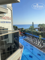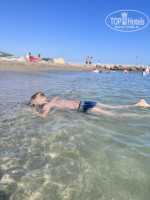 Пляж: в этом году как-то поспокойнее с волнами, но глубина наступает буквально метра через 2. Очень часто грязная вода, плавает какой-то бытовой мусор, особенно после обеда. Левее мелкая лагуна , территория другого отеля, но никого не гоняют, все ходят с маленькими детьми туда. Если держаться ближе к их пирсу почти до середины лагуны можно дойти, потом немного проплыть и снова мелко у волнореза. В волнореза чудесная чистая вода, чудесное песчаное дно, мелко, вечером там много крабиков на камнях .