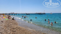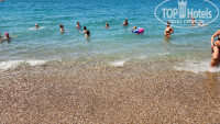 Пляж - класс. Огромные навесы, всегда можно спрятаться в тень. Приходили на пляж и в 10 и в 11 и было даже в 12, и всегда находили лежаки, а нас было 2 семьи и 8 человек. Жалко нет понтона, как у соседних отелей. Иногда были волны и у берега вода была мутная с песком, в таком случае понтон удобная штука. Пляж галька, можно купаться без тапок.