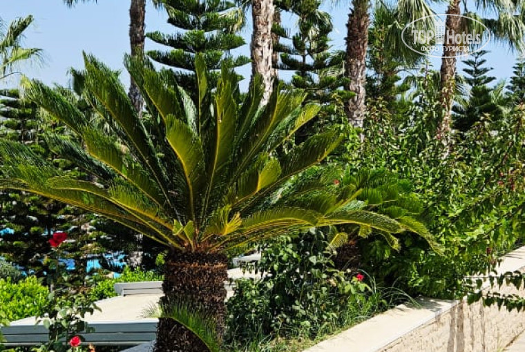 Территория отеля не прям огромная, ну могу сказать что все на ней продумано клево. Очень много удобных баров, закусок и т.д. На территории есть растительность, в основном пальмы и ели. Минус в том, что за территорией не особо ухаживают, кусты не стрижены, на земле может быть мусор.