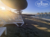 2. Море. Чистое, прозрачное, в меру волн, пляж насыпной, так как песок, мелкие-мелкие камушки, приятные, как бусинки. Вход не пологий, но дно приятное, без плит и без валунов. Слева от пирса меньше людей, справа пляж делится с соседним отелем 4*, поэтому там людей миллион.