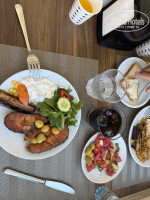 2. Питание. Отличное, разнообразное, все вкусное: мясо, рыба, баранина, курица , тунец, утка. Все в разнообразных видах: запеченое, на гриле, в фольге, тушеное, жареное. Всегда овощи, зелень, салаты, баклажаны, паста, фри, картошка по-деревенски, рис, брокколи, сыры, соусы, всевозможные местные блюда. Из фруктов в нашу поездку были только арбузы и на ужин арбуз + дыни. Десерты: торты шоколадные, банановые, яблочные, местные турецкие сладости. Чай, кофе. На завтрак всегда были: оладьи, яичница, омлет, каша, мюсли, сыры, местные колбасы, джемы, тосты, стоял гриль для бутербродов с горячим сыром (делать самим). Отдельная благодарность официантам. Убока столов, грязной посуды моментальная. Все стараются. Очереди за едой были небольшие , в основном на ужине. Всегда все было в ассортименте.