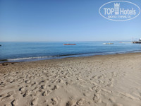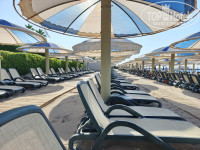 Пляж - на фото всё увидите. Стандартный песчаный пляж, утром вода чистая, к обеду поднимается песок. По шезлонгам - приложил фото, сделанное в 8.00. утра. Последние два ряда свободные вовсе, а по остальным 30 % свободных. Да и в течении дня можно найти свободные, без проблем. У бассейна не знаю не фанаты. Кроме игры в водное поло, в бассейн старались не ногой.
