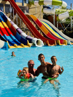 На территории много бассейнов разной глубины, аквапарк - большие горки для взрослых, мини аквапарк для детей 4-7 лет, и есть зона для совсем маленьких. Море - лагуна с лодочками, можно поплавать и позагорать на них, для любителей открытого моря - есть хороший вход в открытое море, но нужна специальная обувь. Там можно понырять с масками, посмотреть рыбок, для детей очень увлекательно. Отличная анимационная команда, не дают скучать не взрослым ни детям.