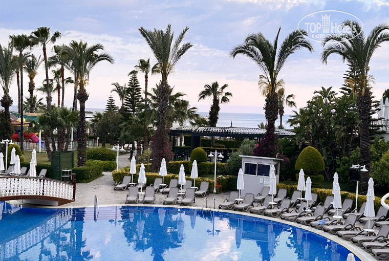 Отдыхали с компанией! Конечно же заселили в номера с видом на дорогу, и на речку! Дорога очень шумная, скорость там разрешена 90 км в час. А из речки квакают лягухи. Но там основная масса номеров выходит на дорогу и речку. Но это не важно, в номерах мы только спали, после энергично проведённого дня, спали как убитые, поэтому не слышали ни машин, ни лягух. Отель очень понравился, особенно тем, что официанты азиаты, всегда с улыбкой, им всё равно оставите им чаевые или нет, но им даже хотелось оставлять чаевые! Еда разнообразная! Пляж чистый, море волнистое))) Очень хороший мужчина из Спа Мустафа, очень отзывчивый, если что обращайтесь к нему, не разводит на Спа! Есть бассейн с горками, вода в бассейне теплая была в мае. Днём и вечером работает анимация, вечером шоу. Номера маленькие, но уютные, напор воды очень порадовал. Напитки иностранные наливают в баре на ресепшен. Вкусное мороженое в баре на пляже. Крылышки вкуснее KFC в баре на пляже. В главном ресторане тоже изобилие еды: есть мясо, рыба, гарниры разные, гриль на улице жарят. голодными мы не ходили. В холле играл мужчина на фортепьяно, прям очень понравилось. Сумочку дали как презент, мелочь, а приятно. Вообщем нам понравилось, вернулись бы ещё раз!
