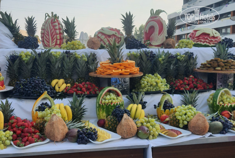 Доброго дня всем кто собирается ехать в этот замечательный отель. Отдыхали в июле 2025. Мама , я и дочь 17 лет. Сами из Белоруссии летели с Москвы. Перелёт авиакомпании Южный ветер , с багажом всё строго , 10 кг на человека и 8кг ручной размер 20×30×40. Стоит специальная стойка доя измерения габаритов . Почитав другие отзывы приготовились заранее что сэкономило время и нервы . Долетели отлично , несмотря на задержку в 2 часа. Всё как обычно трансфер в отель с остановкой в кафе. Приехали сдали документы , девочки уточнили пожелание по номеру , сказали подойти в 14часов, сразу одели браслеты , выпили кофе , покушали чизкейк очень вкусный 😋. Переоделись и пошли в бассейн купаться , с 12 часов уже можно что то перекусить на барах возле бассейна мы не стали там кушать , покупались , дождались обед шикарный , мясо, рыба , говядина , овощи , всякие гарниры ,фруктов тьма арбуз, дыня , виноград , клубника , абрикосы , персики , нектарины , киви и т. д. В 14 часов вернулись на решепшен дали номер нам он не очень понравился из-за того что открываешь балкон , а там что то палят , запах ужасный, поменяли без проблем , так же при заселение за 20$ в сутки предложили семейный, но у нас был стандарт и нам его хватило с головой так как мы приходили только помыться , переодеться и спать . Номер 3608 выходит на дорогу . Спокойная сторона , анимации не слышно. В номере одна большая кровать отдали бабушке , дочь спала на полуторной кровати , а я разместились на тахте , кстати достаточно жёсткая, мне было комфортно. В номере есть впринципе всё , чайник , чай , кофе. Мини бар пополняют каждый день , дочь пила только соки ,попросила что бы ставили вишнёвый , уборщица так и ставила , воду питьевую брали сразу по 15 банок в пакет, они по 200мл. Что бы не бегать каждый раз , вода в свободном доступе везде, бывает что заканчивается , можно попросить дают столько сколько просишь , коса ни кто не смотрит . Фен, кондиционер для волос , лосьон для тела , шампунь в большом дозаторе , тапочки . Есть сейф он платный 1,5€ мы брали. (Депозит на решепшен). На болконе столик , стулья , сушилка для белья. Убирают нормально , я ехала на отдых , а не за уборкой , главное меняли полотенца каждый день , застилали постель , с виду всё ок. Вообщем стандарт для номера. Халатов нет . В эту жару они и не нужны. Кондиционер работает , но запрограмирован на 22 , с пляжа приходишь немного жарковато пока охладишь комнату минимум 20 минут надо. Это единственное что меня напрягало. Трансфер на море ездить с 8 до 18:30. Быстро, но можно пешком минут 10-15 . Мы прошлись один раз и то дочь хотела посмотреть кроликов . Море шикарное в это время тёплое, заход плавный , если отойти в право к центру с развлечениями ,глубина получше , есть питание на пляже можно пообедать разнообразное меню мясо , рыба ,суп, овощи , фрукты , но нет арбуза , мороженое только в рожках , венские вафли с разными кремами и сиропами , на баре не делают коктели . Из спирного наверное вино ( для меня не вкусное) , шампанское, пиво какое не знаю не пробывала , я там брала только кофе и воду . . Гезмели делает тоже но за ними нодо постоять . Один раз поели больше стоять не стали дают 2 штуки в руки. Вообщем в обед ездили в отель. Лежаков хватало , было много свободных. Чего не скажешь про бассейн , там люди в 7 утра занимали места , я в 6 ходила плавать перед завтраком , и уже были заняты 30% лежаков . Завтрак стандартный для в