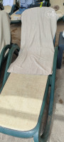 Все лежаки стоят друг к другу впритык, разделены через 2-3 пластиковыми столиками...