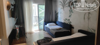В номерах: халаты, тапочки, зубные щетки, бритвы, палочки, шапочка для душа, вптные диски, пилочка, расческа.